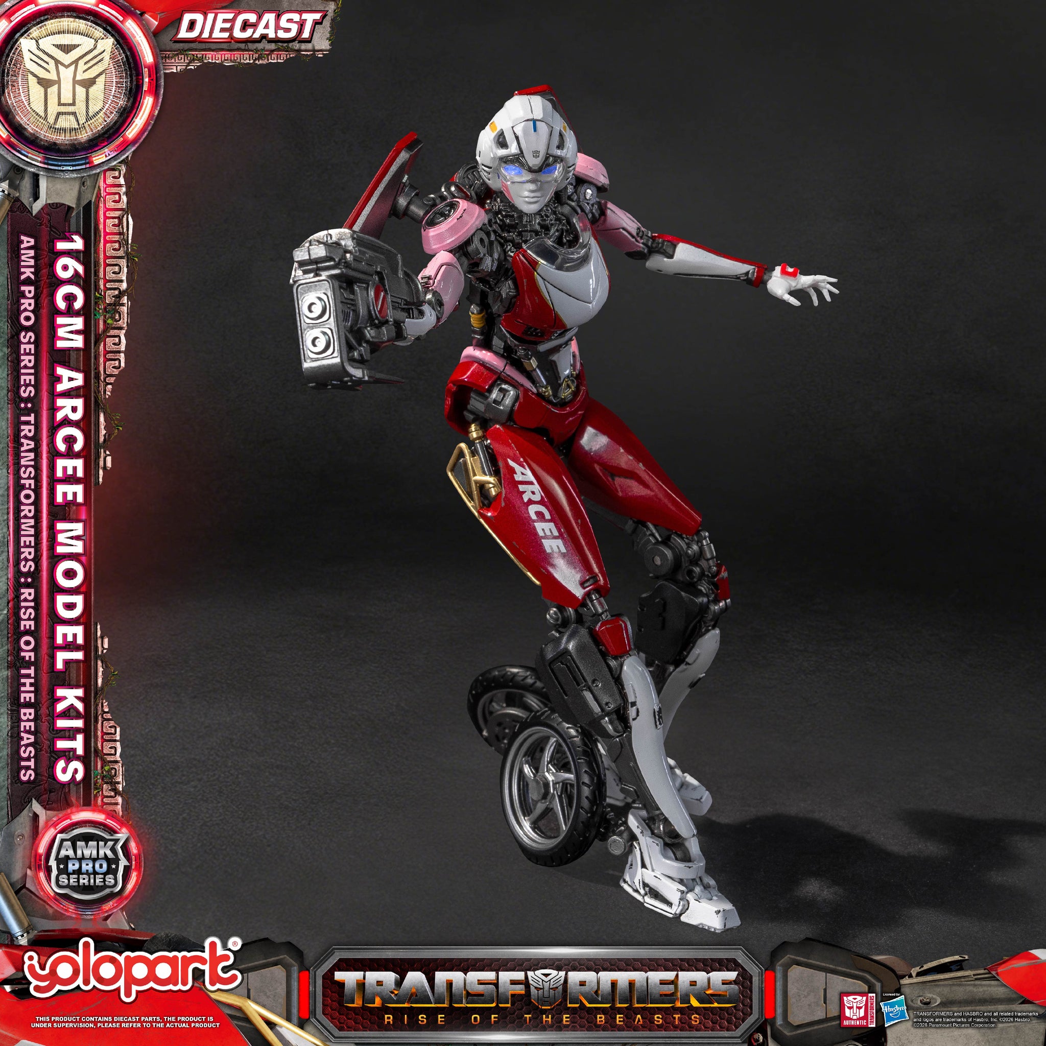 電影7版本的雅希原型是一輛炫酷的杜卡迪916摩托,機器人模型身姿柔美。YOLOPARK以此爲原型,結合高可動設計與細致塗裝工藝,在AMK PRO系列預組裝模型上高度還原呈現電影原設。
