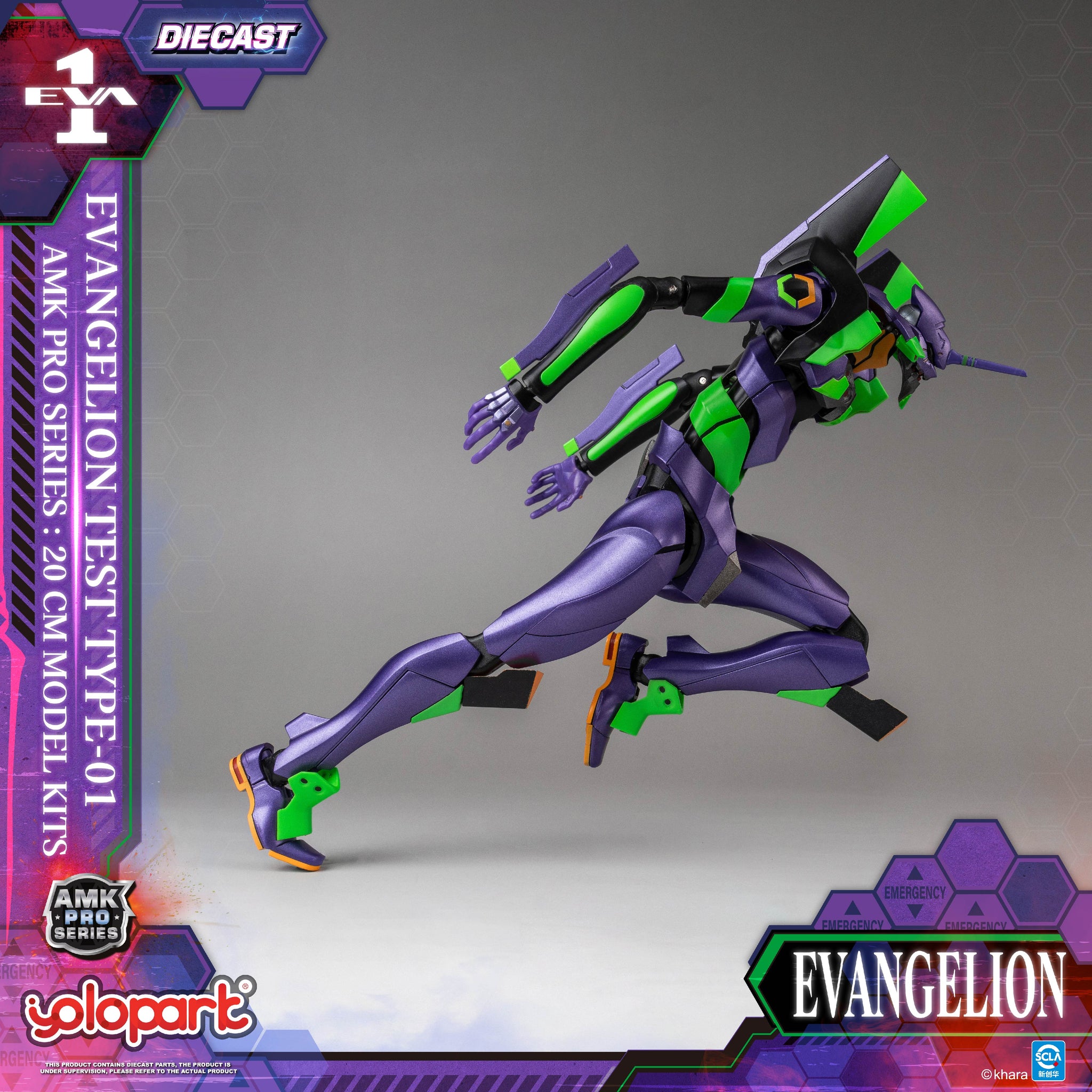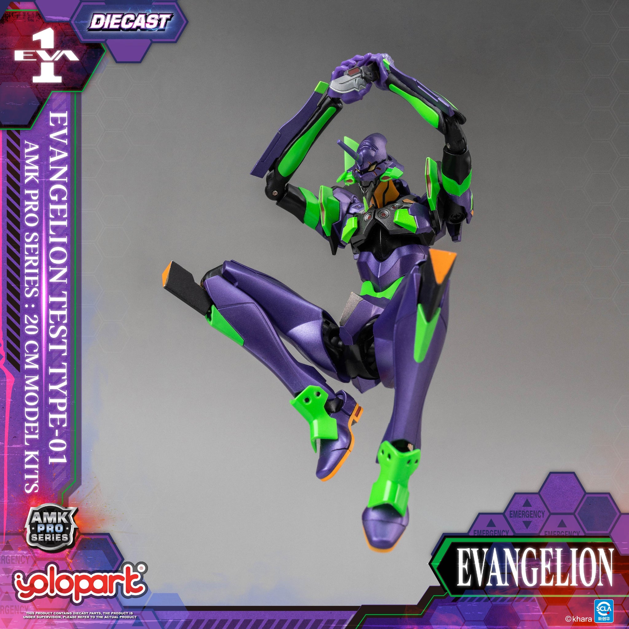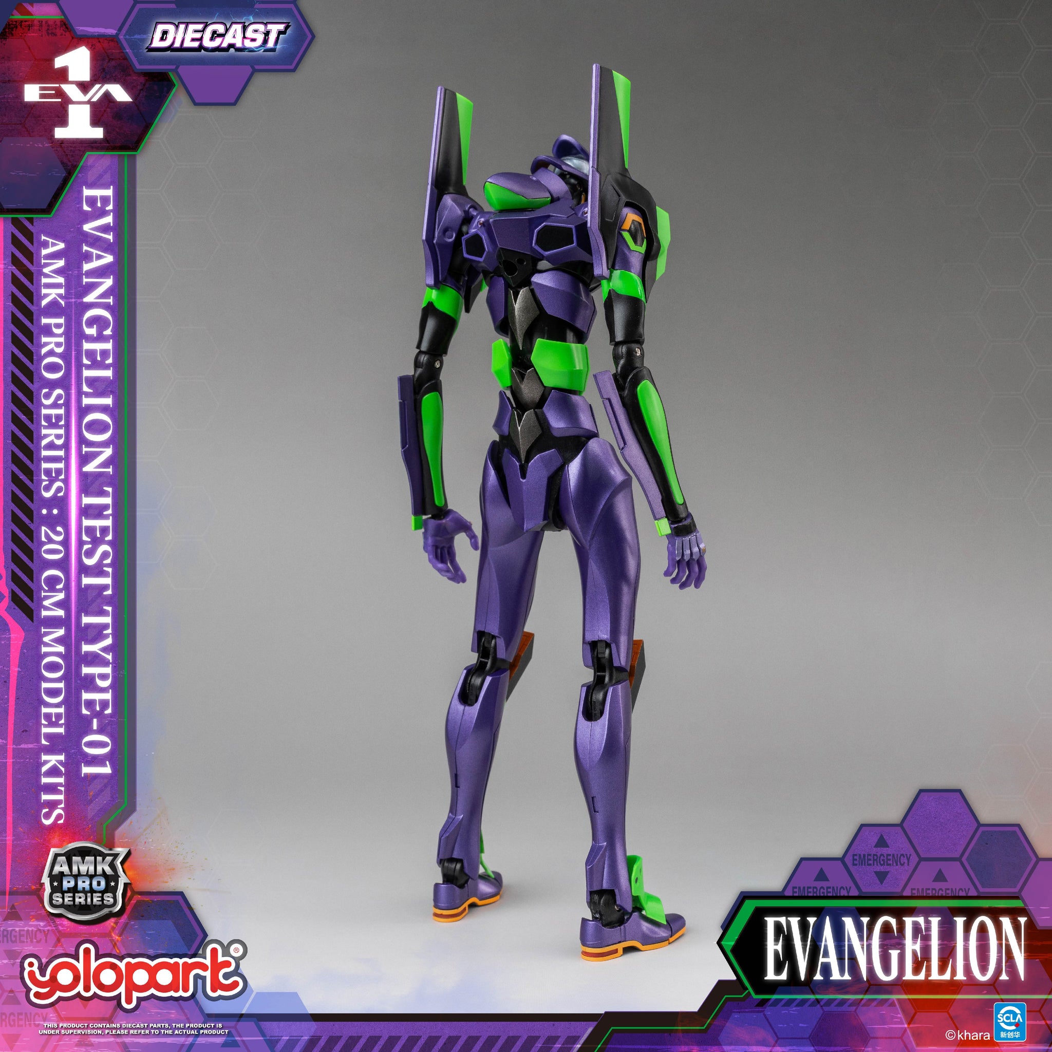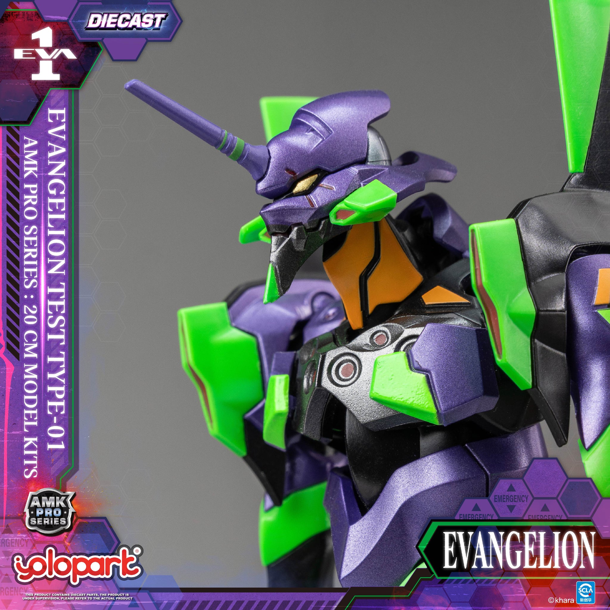 采用新劇場版的造型,全高約20cm,除了一貫的高可動結構設計,本次更升級了全新的合金關節,不僅大幅提升整體穩定性,更賦予産品更厚重紮實的把玩手感。機體紫色外甲采用金屬質感塗裝處理,呈現出機甲獨有的紫色外觀造型。同時眼部和身上的綠色部位更采用熒光塗料處理,在UV紫外線燈的照射下能實現熒光效果,重現夜戰名場面!