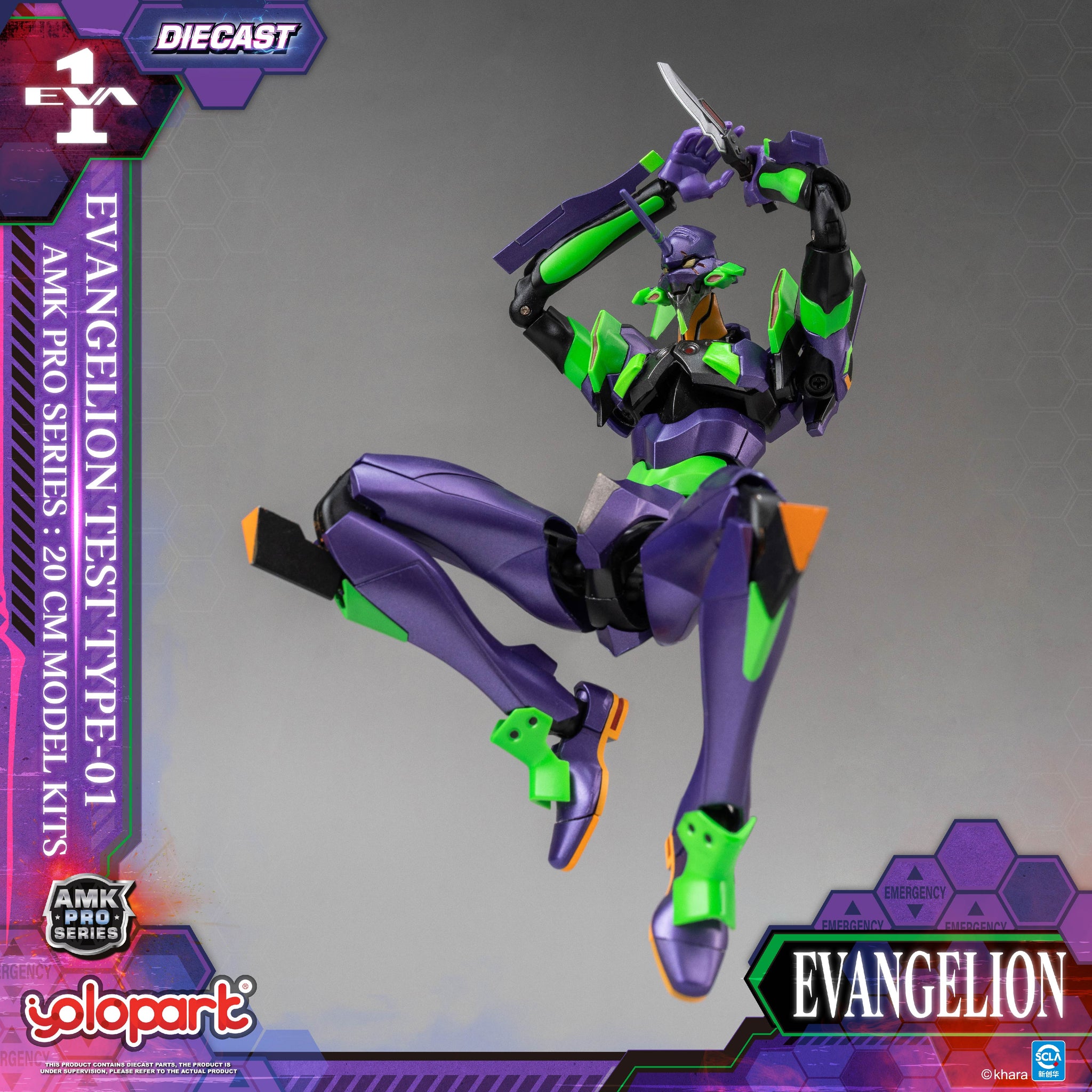 【産品信息】 産品名稱:AMK PRO系列《新世紀福音戰士新劇場版》初號機 産品材質:PVC & ABS & POM & 合金 産品尺寸:約L4.5 * W5 * H20cm 産品售價:299元 産品配置: - 初號機本體*1 - 展示底座*1 - 朗基努斯之槍*1 - 陽電子炮*1 - 加特林機槍*1 - 高振動粒子刀*2 - 戰損替換頭部*1 - 替換手型*3對